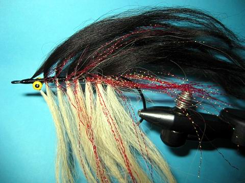 Zum Schluss werden noch Bleiaugen angebunden sowie 2 Büschel in Richtung Hakenschenkel als “Topping”. |