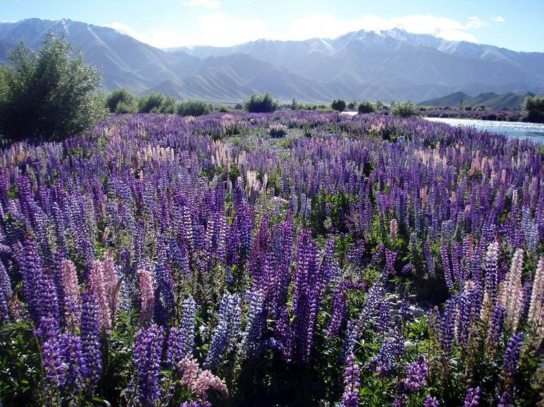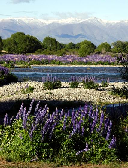 Meer aus Lupinen... | Unten: 75er Regenbogen am Tekapo Kanal