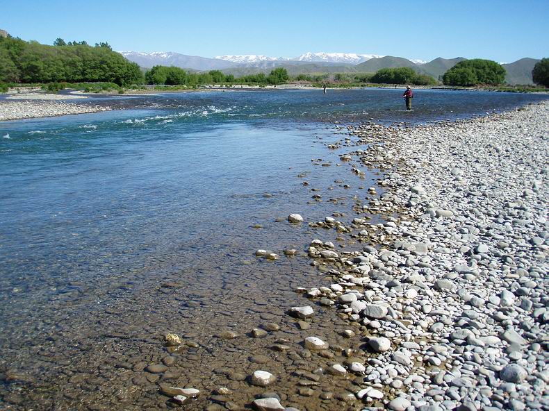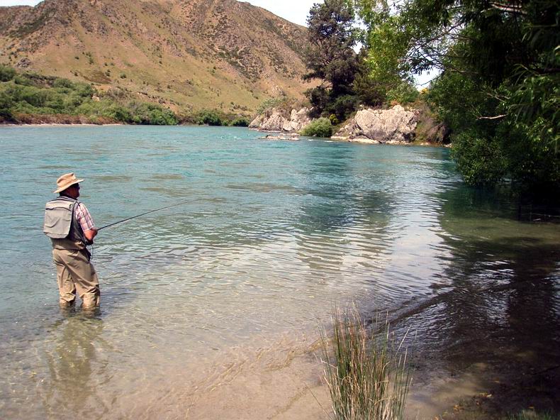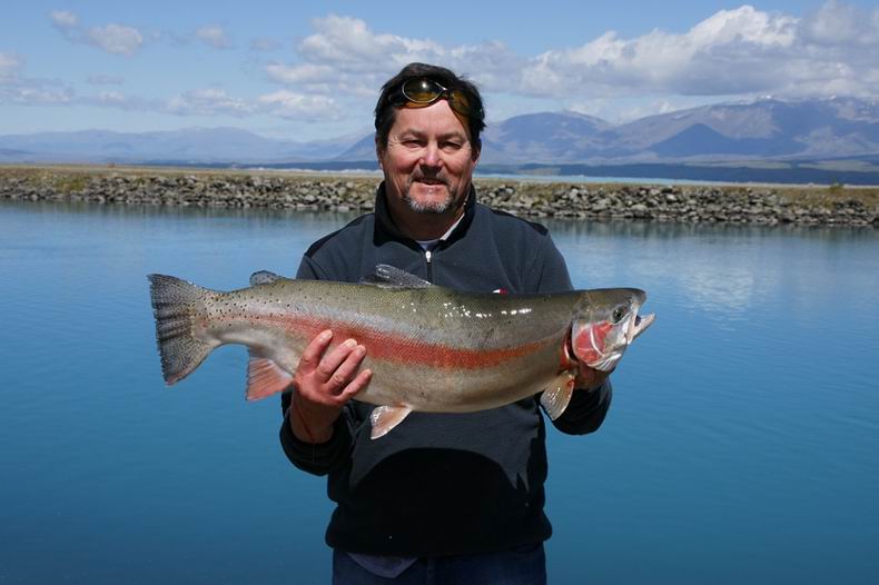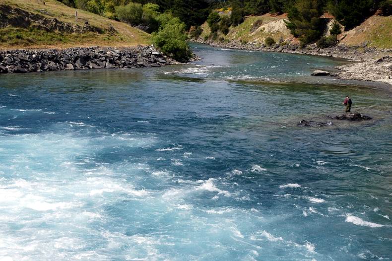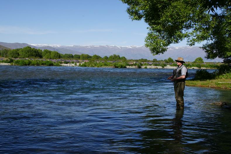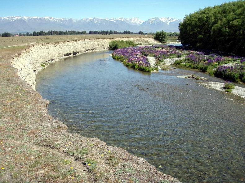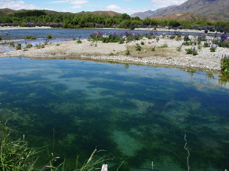 | Trotzdem bin ich nun schon zum 3.Mal hier in Neuseeland, zu einer Jahreszeit, wo bei uns zu Hause der erste Schnee fällt, an manchen Tagen die Temperatur nicht mehr über 0 Grad Celsius steigt und der Tag immer kürzer wird. Natürlich nicht ständig an diesem See fischend, Flüsse von atemberaubender Schönheit haben wir besucht, wild und unreguliert, die Ufer und Sandbänke wie am Ahuriri ein einziges Blütenmeer bildend, die Lupinen stehen im November in voller Blüte. Die Fische sind groß und kampfstark, aber ausgesprochen sensibel. Die kleinste Unregelmäßigkeit lässt sie fliehen oder die Nahrungsaufnahme einstellen. |