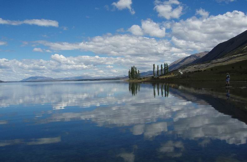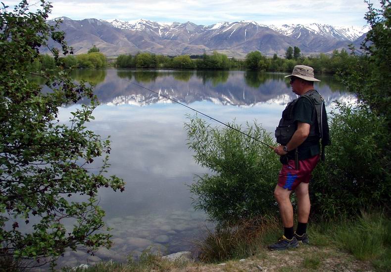 Doch was soll´s, es ist ein warmer und windstiller Tag bei einer Temperatur von etwas über 20 Grad Celsius - inmitten einer prächtigen Landschaft, am Lake Ohau in Neuseeland. Obwohl der See bei einer Länge von etwa 20 Kilometern eine Breite von ungefähr 5 Kilometern hat, ist man scheinbar allein in diesem Paradies, es ist zumindest keine Menschenseele weit und breit zu erkennen. Umringt von Bergen, die teilweise noch Schneehauben haben, liegt die Wasseroberfläche spiegelglatt, die Vögel singen ununterbrochen und ab und zu blökt ein Lamm mit anschließender Antwort des Muttertieres, sonst ist kein Laut zu hören. In Zeitlupentempo strippe ich meine