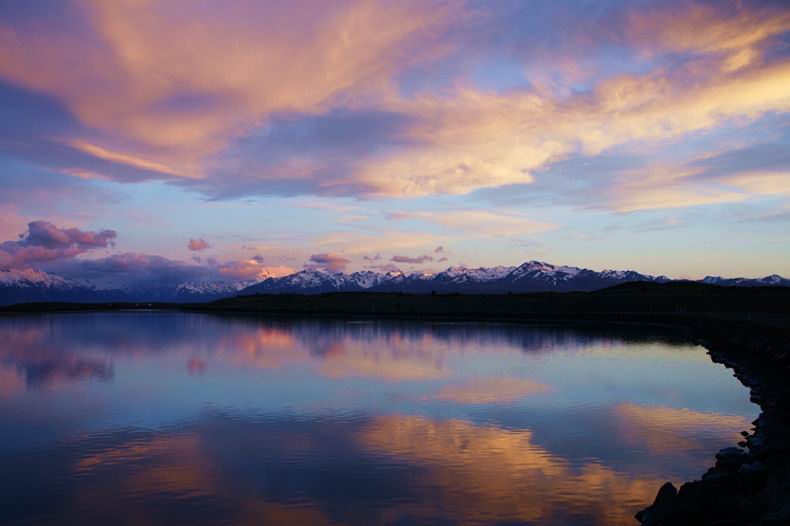 Poaka | Unten: Morgenrot am Tekapo Kanal