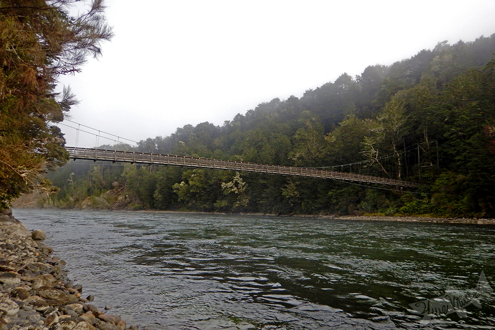 204 - Der Matukituki River mit Blick auf die Hängebrücke zum