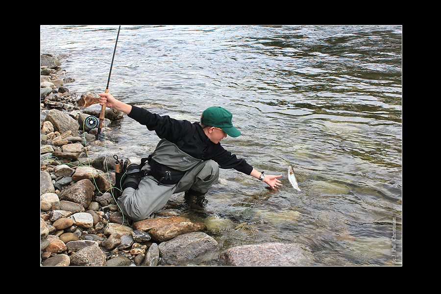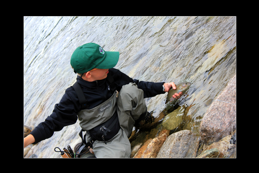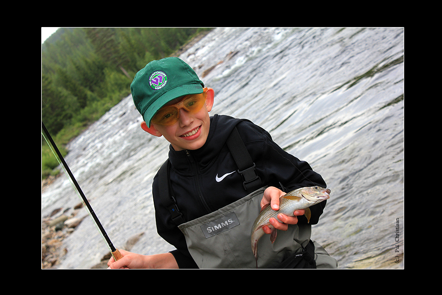 Julius, 13 Jahre jung ... "Einer von dem man später sicher noch hören wird... Julius Vater gab mir den Auftrag als Guide, seinem Sohn die Feinheiten des Fliegenfischens beizubringen. Das Werfen ging ihm schon einigermaßen gut von der Hand. Im weiterem Verlauf am Wasser zeigte sich Julius als ein fanatischer junger Mann mit einem enormen Willen, das Fliegenfischen zu lernen. Er passte gut auf, was ich sagte und schaute sich gut ab, was ich tat - und tat dasselbe. Das Resultat ließ dann auch nicht lange auf sich warten und Julius hatte schon schnell eine schöne Äsche in der Hand und eine stolzes Lächeln im Gesicht. Nur waren seine Arme leider noch etwas zu kurz. Aber das macht nichts, die werden schon noch länger... !" |