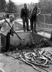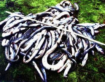Ein ganzer Haufen getöteteter Aale, die von Winfried