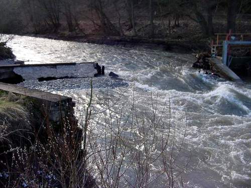 Foto unten: Ilm am gebrochenen Münchner Wehr, aufgenommen am 02.03.2002 gegen 15:30 Uhr. (Foto: Michael Müller)
