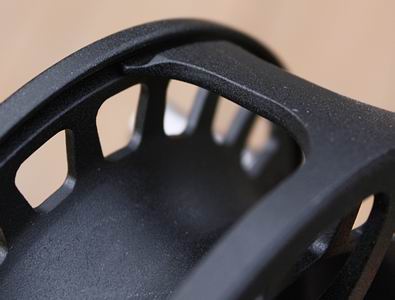 | Beschreibung und Praxistest: Attraktive Großkern-Fliegenrolle im trendigen SAGE Design, hergestellt in Kombination aus Aluminium Druckguss- und Fräsverfahren, mit salzwasserfest vergüteter Rollenoberfläche und vollständig geschützter, verkapselter Scheibenbremse. Ansprechendes, modernes Design und reflexionsarme, mattschwarze Farbe. Die Spule der 2250 läuft auf einem mehrfach gelagerten, in sich geschlossenen Achsensystem im offenen Rollenrahmen, unter sehr guter, rückseitiger Gehäuseplatzausnutzung und mit einer bis auf fünf schmale Stege offenen Gehäuserückseite. Zwei seitliche Stege des Rollenrahmens greifen sauber und tief in die entsprechende Nut auf der Spuleninnenseite hinein: ein breiterer Steg hinten, an dem sich der zweifach von Innen geschraubte Rollenfuß befindet und ein schmaler Steg vorne mittig für die Schnurführung. Ein ungewolltes Durchrutschen von Schnur oder Vorfach zwischen Rollenrahmen und Spule wird durch die Bauweise wirkungsvoll verhindert. Die 2250 ist von Links- auf Rechthandbetrieb bzw. anders herum umbaubar (beschrieben im "Owner's Manual" in englischer Sprache). Die Spule wurde auf der Vorder- und Rückseite zwecks Gewichtseinsparung und Belüftung dicht mit großkalibrigen Durchbrüchen versehen. Sie besitzt einen leicht übergreifenden Rand, um bei Bedarf eine zusätzliche Handbremsung zu ermöglichen. Der Spulenkern ist bis auf ein "Y" ebenfalls offen, der Spulenboden ist für eine höhere Schnurkapazität konkav geformt und ungelocht. Die sehr schön zur Rolle passende Kurbel aus Aluminium ist leichtgängig, ohne Spiel und griffig, ihre Form wirkt einem Abrutschen der Finger entgegen. Der Kurbel gegenüber wurde ein Kontergewicht angebracht, welches mit für einen 100%ig "schlagfreien" Spulenlauf sorgt, auch bei hohen Abzugsdrehzahlen. Die mehrfach gelagerte Spule läuft weich und toleranzarm, bis auf ein äußerst geringes und daher unbedeutendes vertikales und horizontales Spiel der Spule ist alles im "grünen Bereich". Alle Ecken und Kanten wurden gut abgerundet, die Fertigungsgüte der gesamten Rolle zeigt sich auf einem recht hohen Niveau. | ![]() |