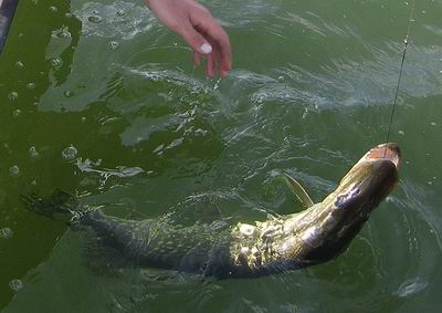 Fluchten am Boot und ich konnte den ersten richtigen Hecht fangen. Genau