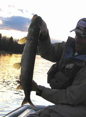 An diesem denkwürdigen Abend konnte ich 5 weitere Hechte haken. Der größte bestimmt über einen Meter – es gelang mir aber bei keinem, ihn länger als 15 Sekunden zu drillen. Die Rute war viel zu weich, und der Streamer bzw. der Haken viel zu dick... |