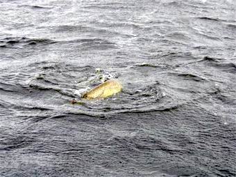 07.06.05, 10:00 Uhr: Sehr starker Nordwestwind mit hohem Wellengang (so wie ich ihn liebe). Vångagrynnet: Mehrere Versuche mit Streamer ohne Erfolg. Dritter oder vierter Wurf - Biss!: 103 cm, 8 kg, der Schwerste in diesem Urlaub und das bei Nordwest, wo man eigentlich, nach landläufiger Meinung, hätte zu Hause bleiben können. Also was sollen die ganzen Spekulationen über den Wind? Es gibt nur einen Umstand bei dem man nichts fangen kann....... wenn man erst gar nicht auf's Wasser geht! |