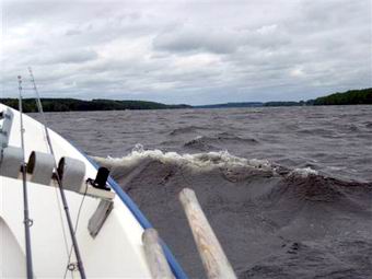 Der Wind, der Wind...... Ein ganz wichtiger und nicht zu unterschätzender Faktor ist der Wind. Bei Windstille, Nordwest-, Nord- oder Ostwind macht, wenn überhaupt, höchstens das Schleppen mit Wobbler noch einen Sinn. Bei Westwind kann etwas gehen, meistens jedoch mit dürftigen Ergebnissen. Sehr gute Erfolge sind bei Südost- und Südwestwind zu erwarten. Ordentlicher Wellengang ist von Vorteil. |