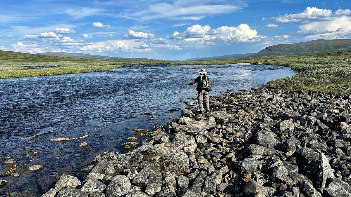Unterwegs war ich nach der TT-Line Fährüberfahrt Rostock-Trelleborg rund 6000 Kilometer mit dem Auto, 2x mit dem Heli, etliche Kilometer zu Fuß und mit verschiedenen Wasserfahrzeugen, auch wieder mit meinem Lieblings-Bellyboat mit E-Motor. Genächtigt wurde im Auto, im Zeltlager oder in mehr oder weniger komfortablen Holzhäusern/Hütten. Zum Fliegenfischen ging es an diverse Flüsse und Seen auf Forellen, Saiblinge und Äschen. Insgesamt war es wieder einmal eine wunderbare Reise mit vielen tollen Eindrücken und Erlebnissen. Die fischereilichen Erfolge waren auf dieser Tour jedoch leider eher bescheiden. Dies lag ausschließlich an der gerade vorherrschenden, mehrere Wochen andauernden Hitzewelle. Wir sprechen über Temperaturen von um 30 °C oberhalb des Polarkreises und im Hochfjell, was auch bzw. besonders in den Bergregionen zu bedenklich hohen Wassertemperaturen führte und allen dort lebenden Forellen und Saiblingen absolut und anhaltend den Appetit verdarb. Was da oben allerdings in Unmengen auftrat, waren Heerscharen von Mücken, die einem bei Hitze und Windstille das Leben unerträglich machten. Sozusagen Kopfnetzpflicht angeordnet... und ThermaCell half im Lager ganz gut... Dafür entschädigte jedoch die unvergleichlich wunderbare Landschaft :-) Und nun: einfach zurücklehnen und genießen! Für Fragen zu den besuchten Regionen stehe ich wie immer gerne zur Verfügung (Kontakt siehe ganz unten). |