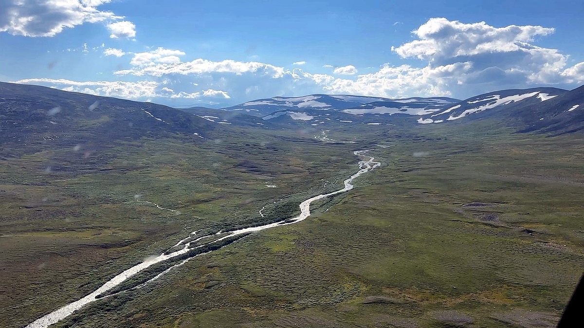 schon fliegen wir bei Traumwetter in ein abgelegenes Flusstal in der weglosen