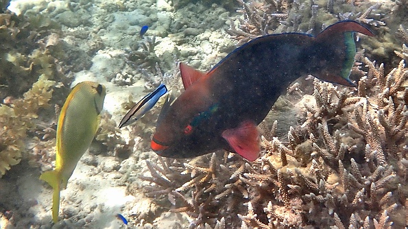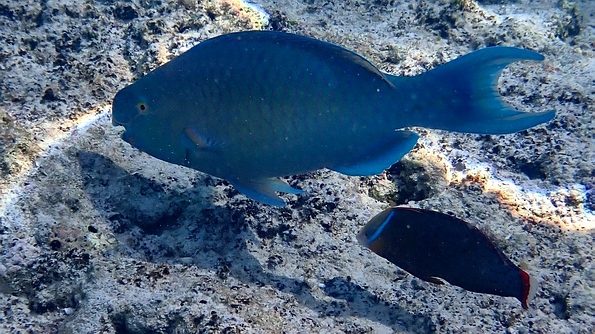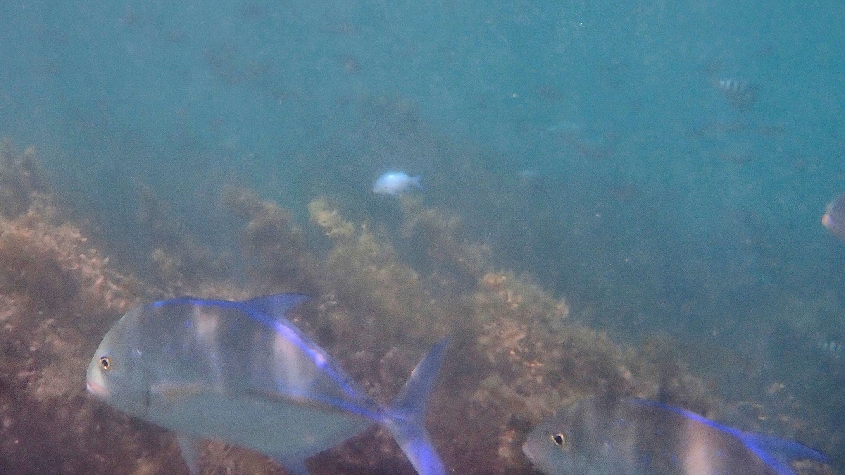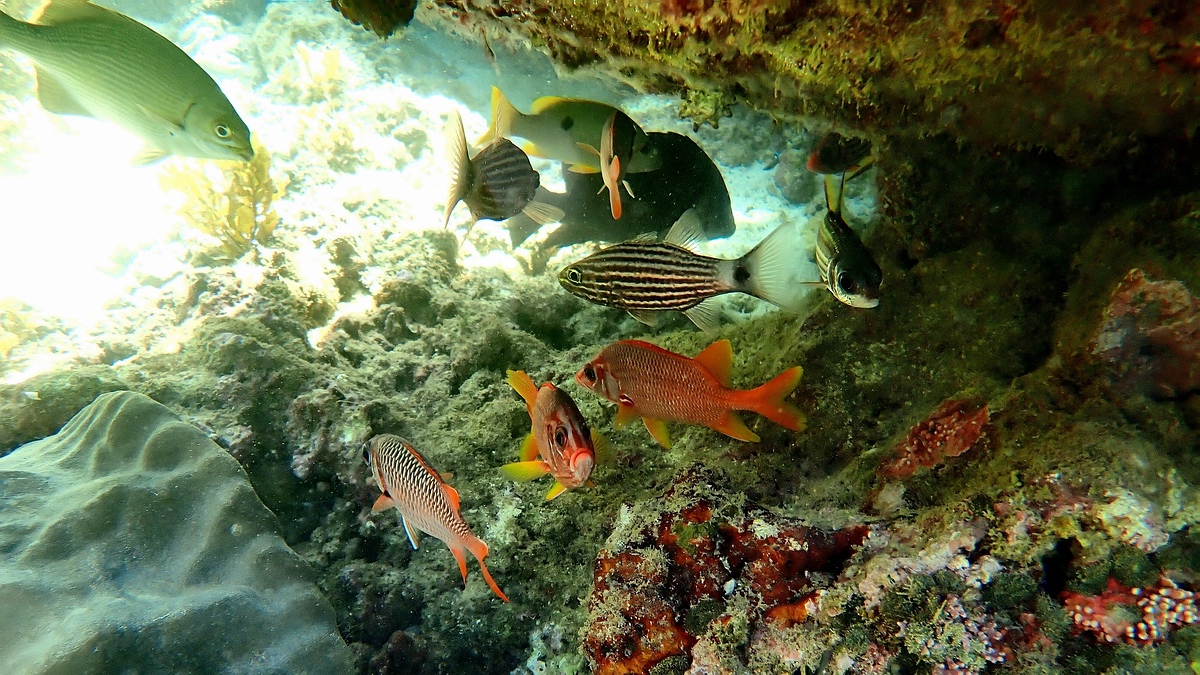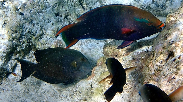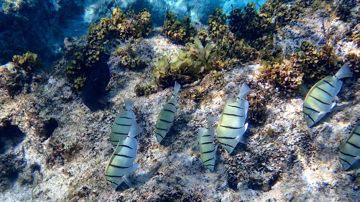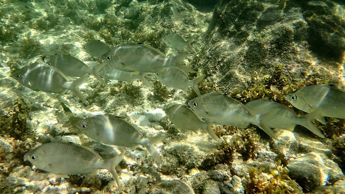 hier schwammen im Meeresschutzgebiet (Angeln verboten) beim Schnorcheln