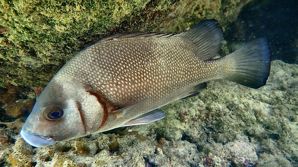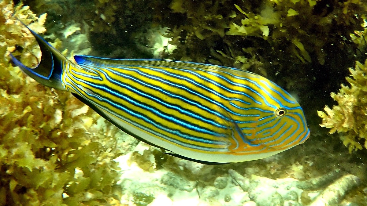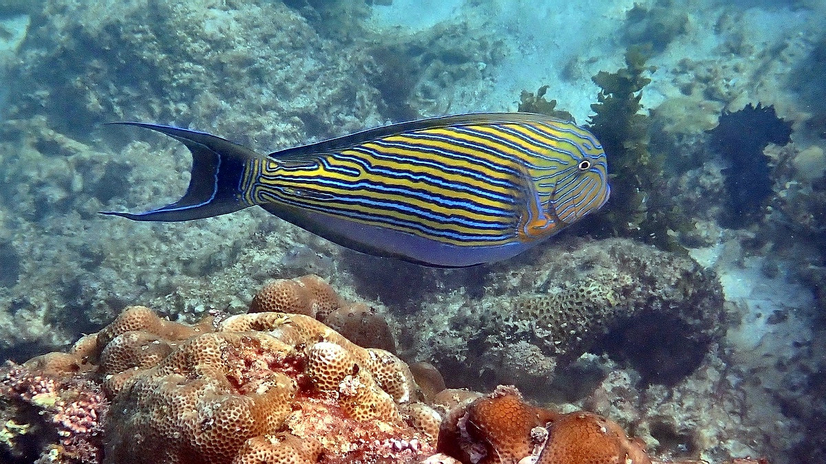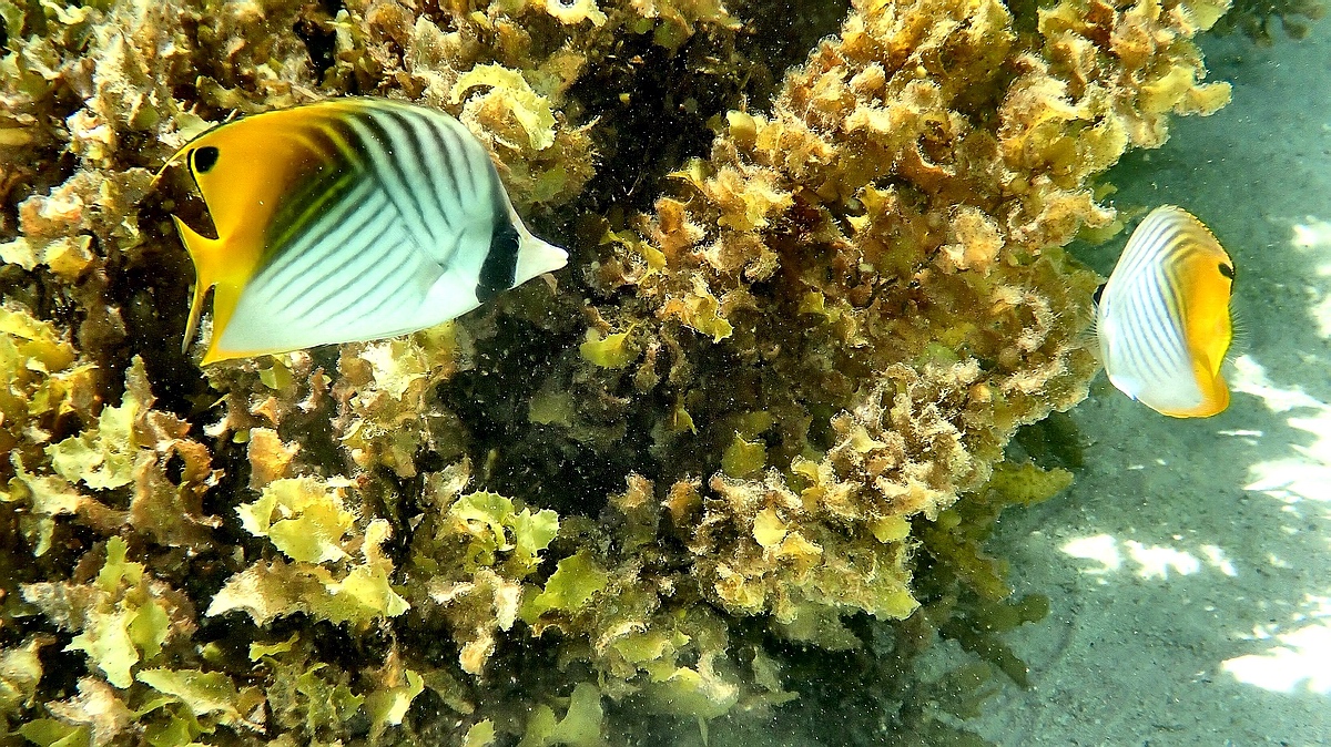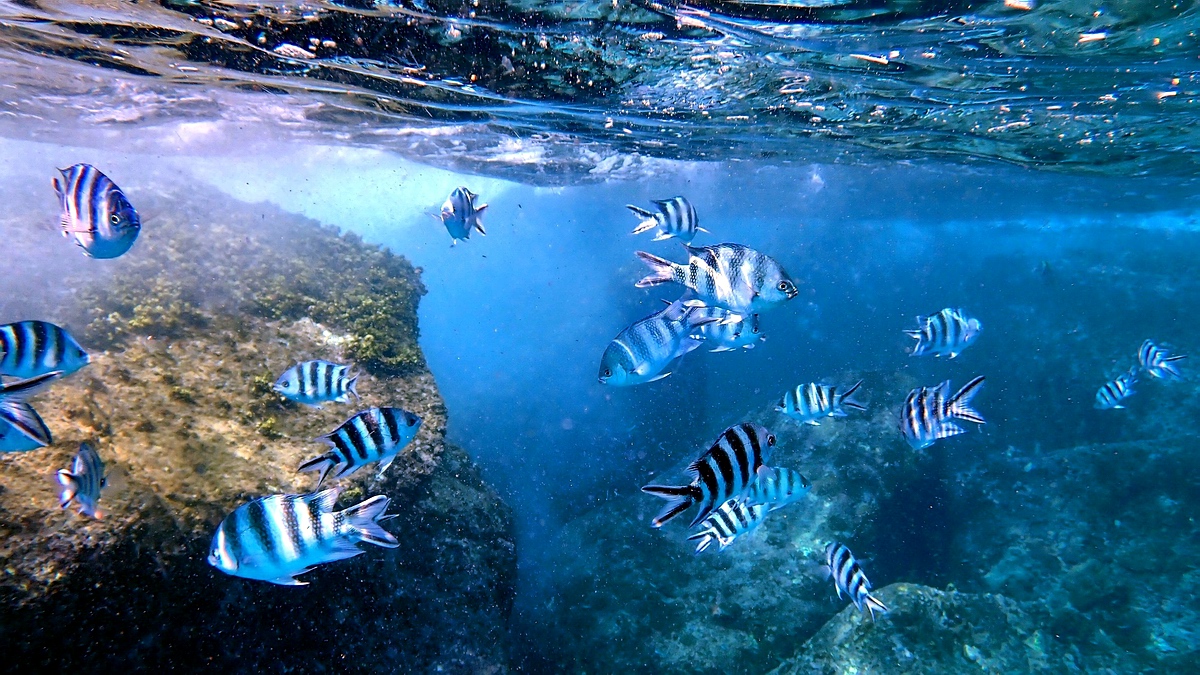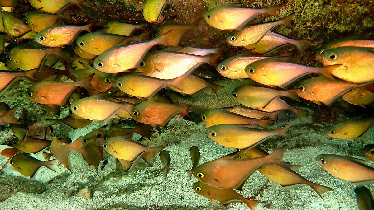 hier schwammen im Meeresschutzgebiet (Angeln verboten) beim Schnorcheln