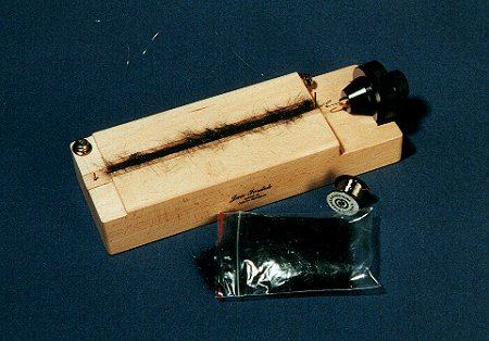 Der Turbo Spinning Block TM erlaubt auch dem ungeübten Binder, innerhalb kurzer Zeit Dubbingstränge nach den eigenen Wünschen und Vorstellungen aus den verschiedensten Materialien |