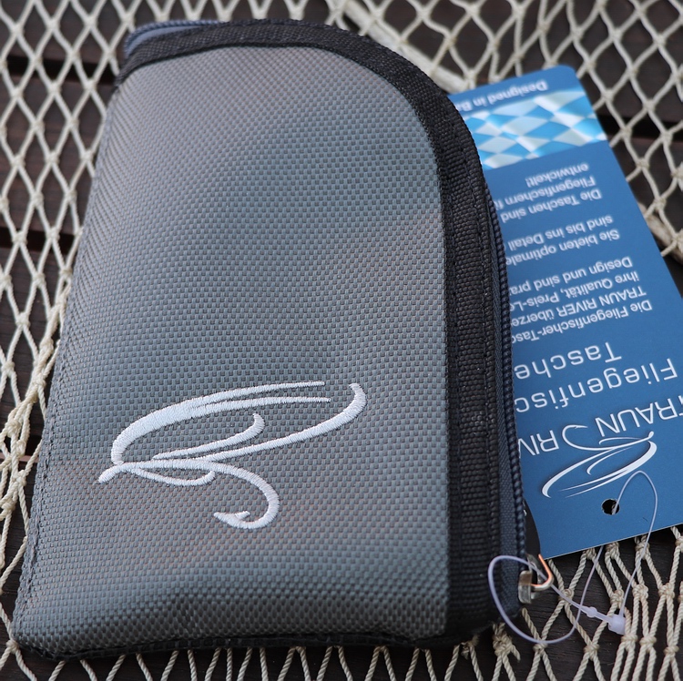 | Reißverschluss und ein gesticktes TR Logo (Fliege). Die Maße lauten ca. 17,5 x 10 cm und das Leergewicht beträgt nur 63 Gramm, so passt das Teil in jede Westen-, Jacken- und Wathosentasche. Der Kostenpunkt beträgt 12,90 €. |